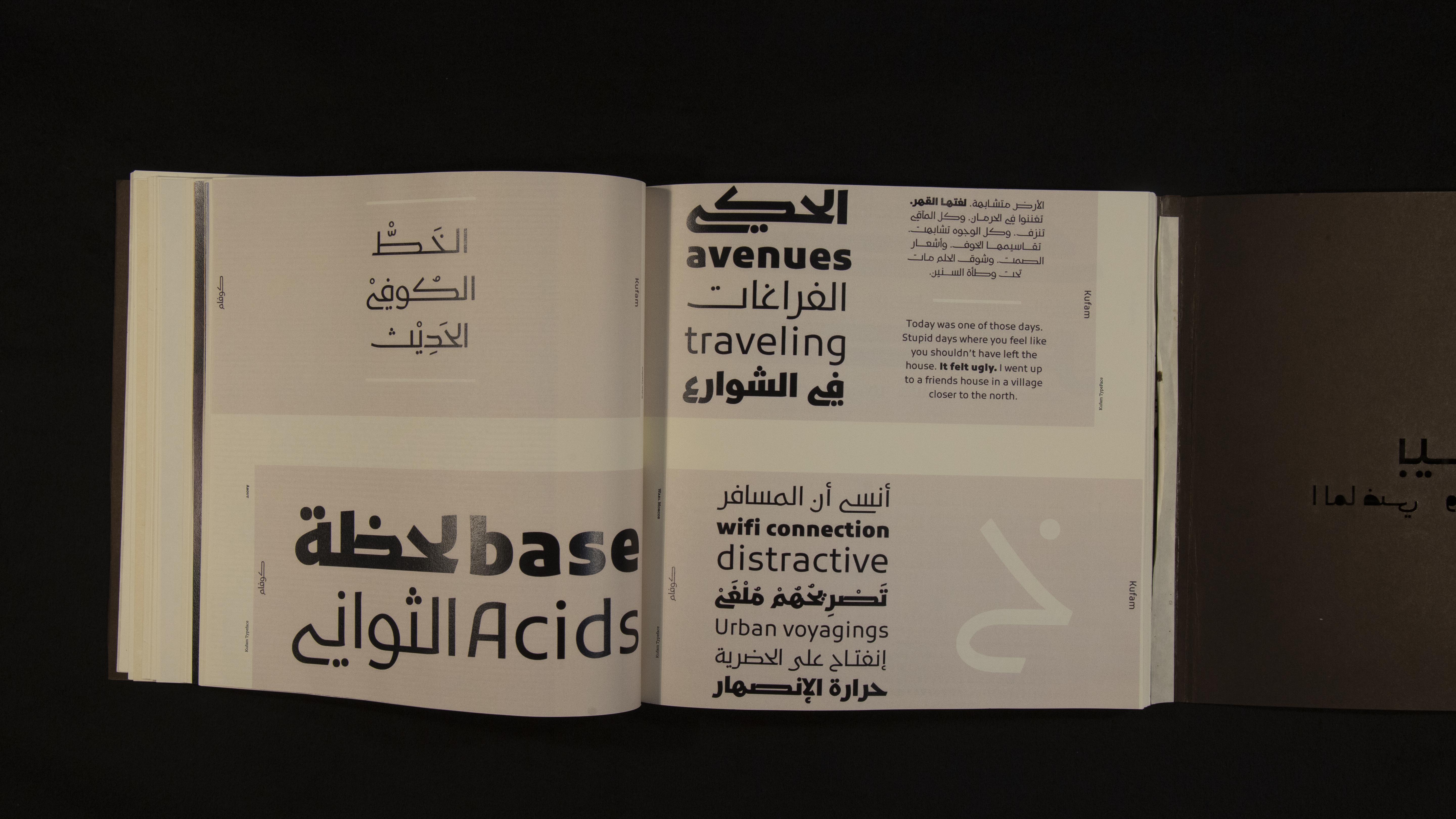 Based on Arabic Calligraphy and TypographyBetween Past and Present is a publication that explores the evolution of Arabic typography and calligraphy. The book features two covers, designed to reflect the unique reading directions of both English (left to right) and Arabic (right to left). The chapter openings are intricately engraved and laser-cut, adding a tactile dimension to the design. The cover is crafted from marble acrylic sheets, giving it a sophisticated and timeless feel that honors the rich cultural heritage of Arabic calligraphy while embracing modern design techniques.